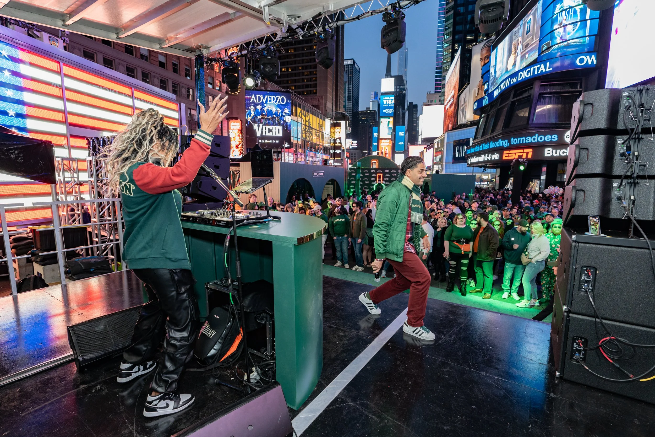 160over90 planned and executed a multi-level approach to spread St. Patrick’s Eve across the country centered around a live ball drop experience in Times Square to ring in the holiday. 160over90 helped Jameson take over a plaza in Times Square under the Ball Drop billboard to welcome consumers into the Jameson family and help celebrate the countdown to the ball drop at 8pm (midnight in Ireland). The free, public activation included a 20-foot-tall entrance, a stage for our DJ and Emcee, Jameson merchandise, multiple large-scale photo ops, and a station to collect your Jameson cup to bring to one of our six partner bar takeovers in the area to redeem a free Jameson cocktail. 160over90 also executed a friends and family watch party event at the M Social Hotel where media, influencers, and guests were greeted by Michael Che and Colin Jost. The event included a large-scale build with branded photo experiences, Jameson cocktails and RTDs, a DJ performance from Anderson Paak, and a direct view of the ball drop from the patio.